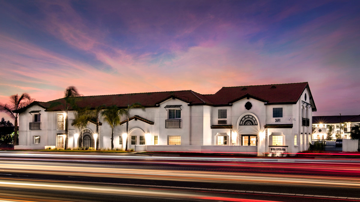 A Jamboree Housing affordable housing development, Buena Esperanza is a former Econo Lodge motel that was revitalized to include 69 studio units of permanent supportive housing for formerly homeless individuals, with 20 reserved for veterans. The development also includes a social gathering place, kitchen and food pantry.