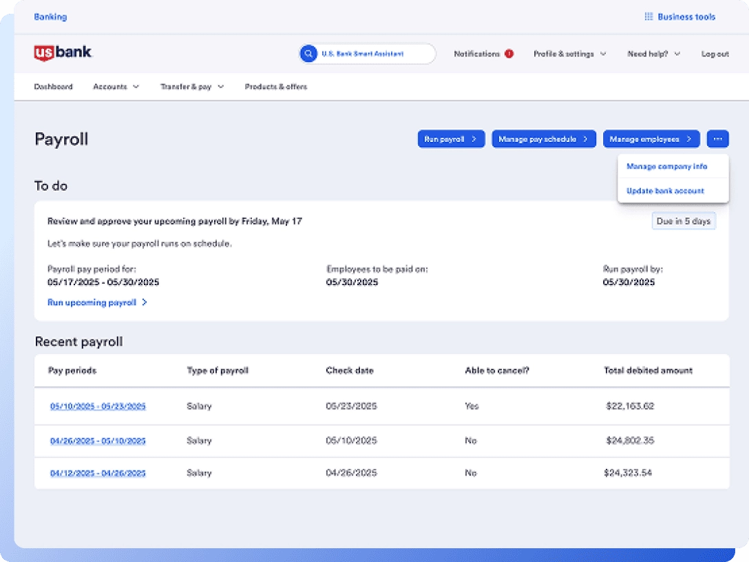 U.S. Bank Payroll powered by Gusto centralizes the tools you need to run payroll, automate tax filings and simplify daily business activities.12