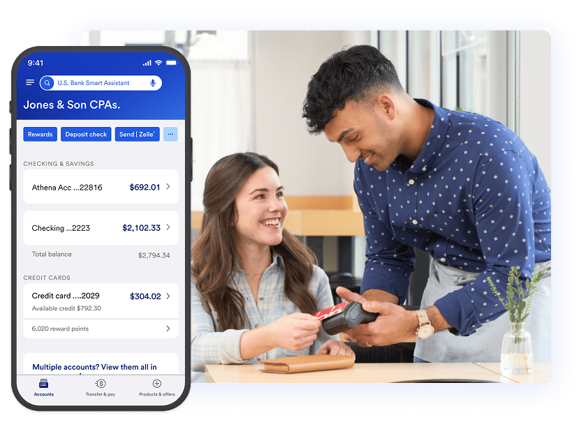 U.S. Bank Business Essentials includes a business checking account, a point-of-sale system and payment processing.