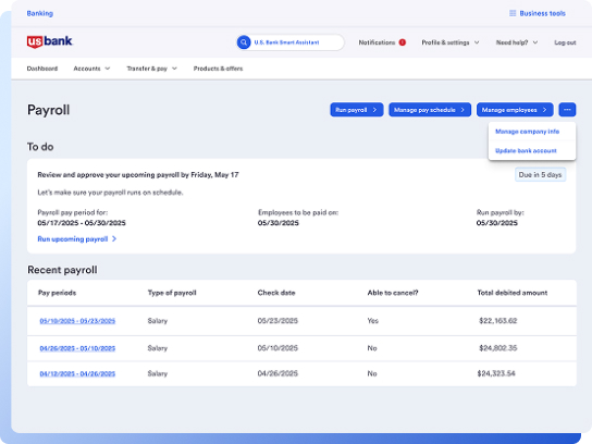 U.S. Bank Payroll powered by Gusto centralizes the tools you need to run payroll, automate tax filings and simplify daily business activities.2
