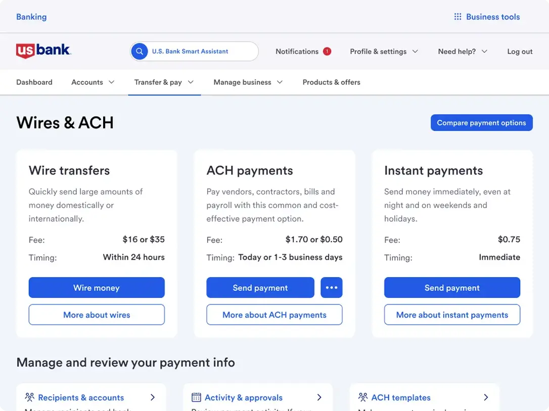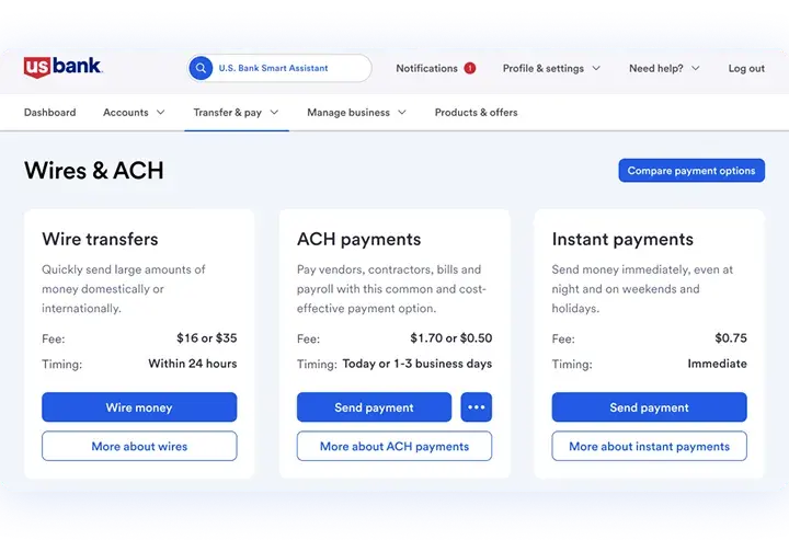 Wire transfers initiated in the U.S. Bank Mobile App or online banking are limited to domestic (U.S.) transactions, in U.S. dollars, to bank accounts at financial institutions in the United States. International wire transfers may only be completed by visiting a U.S. Bank branch.