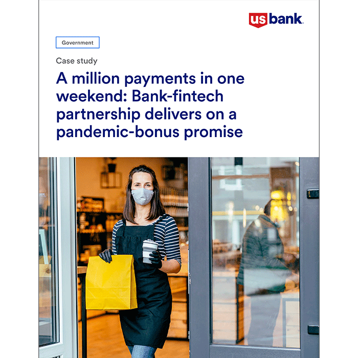 The U.S. Bank team creates customized treasury and payment solutions that help governments better serve citizens. Find out how we can partner with you.