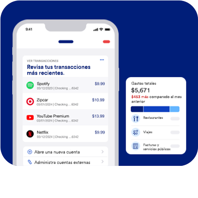 Bank Smartly® Savings te da acceso a nuestras herramientas digitales fáciles de usar para crear presupuestos y así ayudarte a monitorear todas tus cuentas (hasta las que tengas en otros bancos) y establecer metas financieras claras.