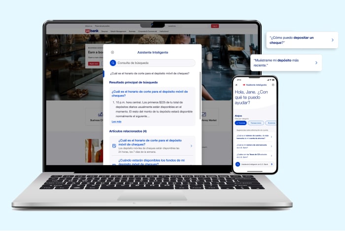 Es un poderoso asistente bancario inteligente en la Aplicación Móvil de U.S. Bank, en la banca en línea y en todo usbank.com. Tu Asistente Inteligente está aquí para ayudarte, ya sea en inglés o en español.