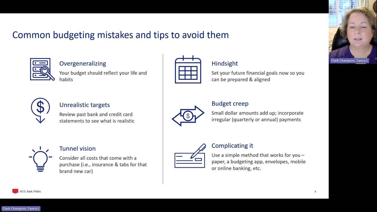 U.S. Bank assumes no responsibility for and makes no claims concerning the merit or sufficiency of your goals and does not assume any responsibility or liability for any losses or other outcomes resulting from decisions made by you, actions taken or not taken by you, in connection with U.S. Bank and U.S. Bank Goals Coaching services.