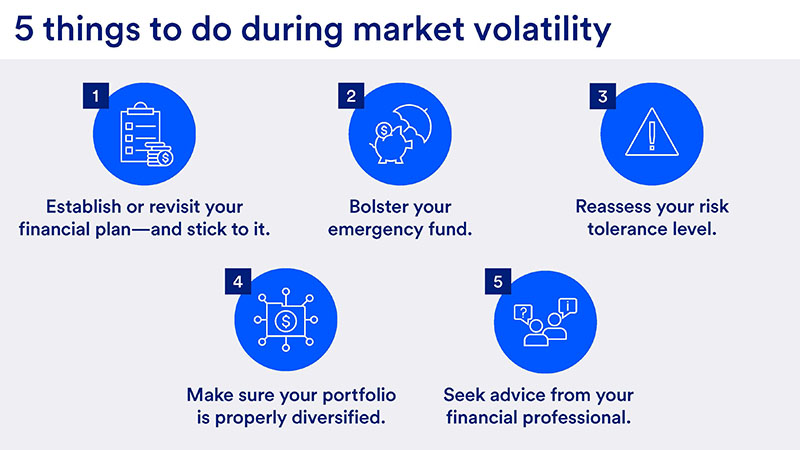 Having a financial plan in place, re-examining your risk tolerance and maintaining an appropriately diversified portfolio can help you prepare for and better weather market volatility.