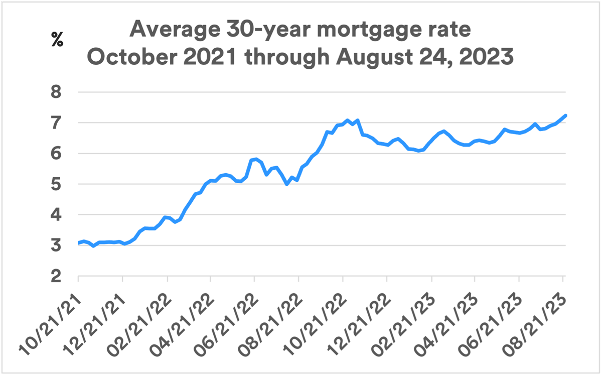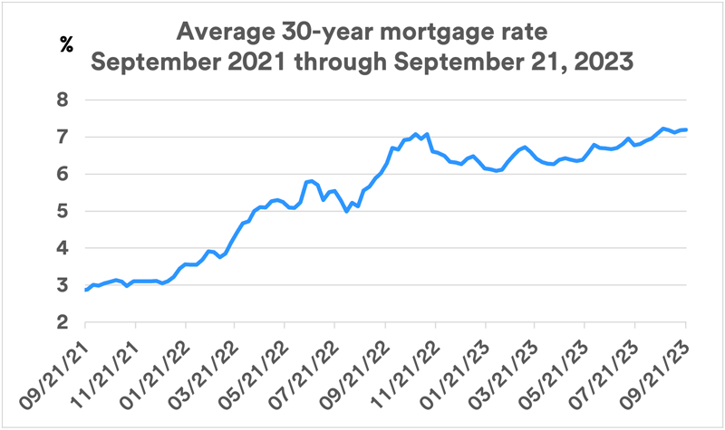 Interest rates began rising in 2022, and mortgage rates followed. Today’s mortgage rates are close to double the rates that existed in 2021. 1 As a result, homebuyers must make higher monthly mortgage payments. This caused some potential homebuyers to step back from the housing market. At the same time, it led some current homeowners who potentially were interested in moving to a different house to hold off doing so to preserve their current, low mortgage rate. Therefore, housing activity has slowed significantly, primarily due to the recent change in the interest rate environment.