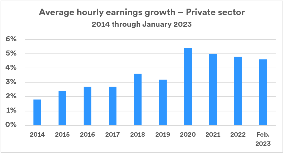 Job openings declined slightly over the past year but remain high at 7.2 million.3 “Companies are searching for people but seem to have difficulty finding the right candidates,” says Rob Haworth, senior investment strategy director with U.S. Bank Asset Management Group. “Businesses are hanging onto existing employees while looking for more of them.” The BLS reports that about 7.6 million Americans are looking for work, roughly matching the number of open positions.1