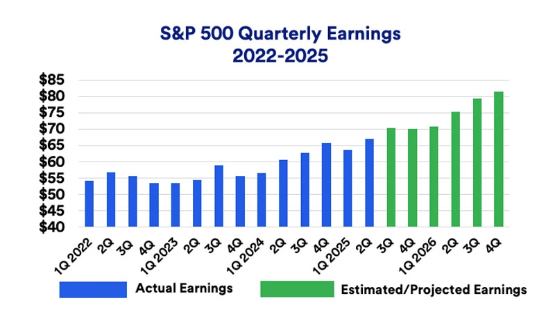 Analysts currently forecast about 9.5% S&P 500 earnings growth for 2025.1 These forecasts may change as new information emerges, but the economy and corporate profits remain solid, even in the new tariff environment. Recent tax legislation (the “One Big Beautiful Bill Act” or OBBBA) allows companies to fully expense or depreciate certain costs, lowering taxes and stimulating investment.