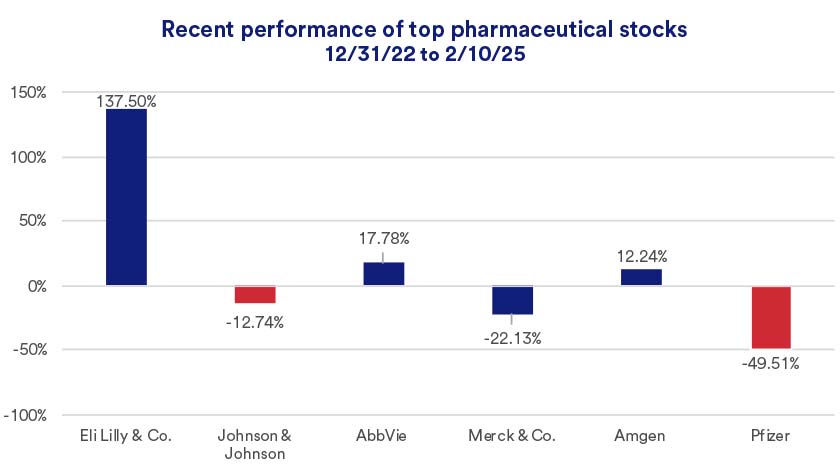 “Weight loss, data analytics, tools and diagnostics, robotics, medical devices, and insurance are among areas we regard as having the highest investment appeal,” says Terry Sandven, chief equity strategist, U.S. Bank Asset Management Group. Weight loss is a worldwide challenge. Eli Lilly is favorably positioned to solve the burdening weight problem with its GLP-1 drugs Mounjaro (for diabetes) and Zepbound (weight loss). Similarly, healthcare’s rich data provides a significant opportunity for data analytics companies. Veeva, NVIDIA, Meta Platforms, Alphabet, Oracle, Amazon, Microsoft, and Palo Alto Networks are among technology-related companies with products or groups that extend into healthcare. Additionally, robotics and medical devices are among companies positioned to offer solutions for improved patient outcomes, workforce shortages, and physician efficiencies. Companies that operate in these areas include Intuitive Surgical, Medtronic, Stryker, Insulet and GE Healthcare.