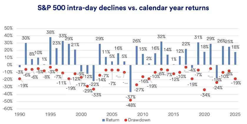 Determining the right asset mix for your portfolio involves making investment decisions that suit your personal situation, not just reacting to market and economic trends. The current market environment reflects lessons from history – stay invested and diversified, despite market volatility and uncertainty. Significant market swings like those experienced in 2025 are nothing new.