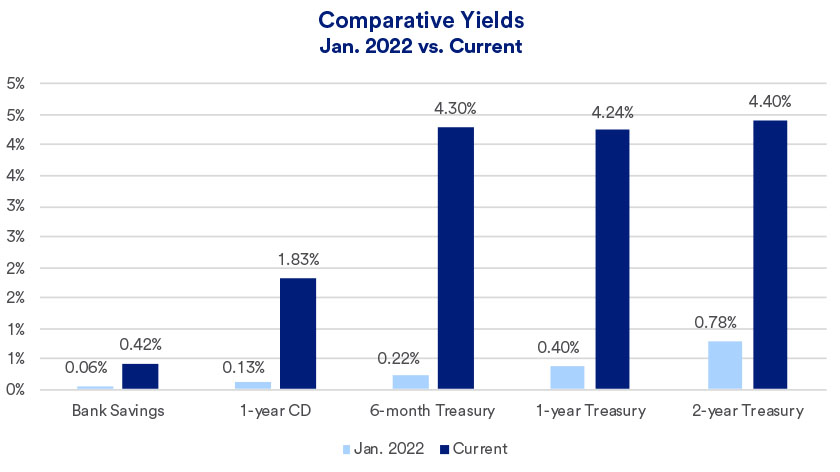In today’s market, in which investors can capitalize on very attractive yields on short-term assets such as money market funds, CDs and Treasury bills, significant money is held in cash-equivalent vehicles. However, it’s important that investors seeking to achieve long-term goals look for reasonable opportunities to put cash to work in ways that will help achieve those objectives. This includes using stocks, longer-term fixed income instruments and real assets such as commodities or real estate. A diversified mix of long-term assets is can help generate competitive returns over time. In an environment of elevated inflation, it is critical to position assets in long-term investments that can generate solid, after-inflation returns.