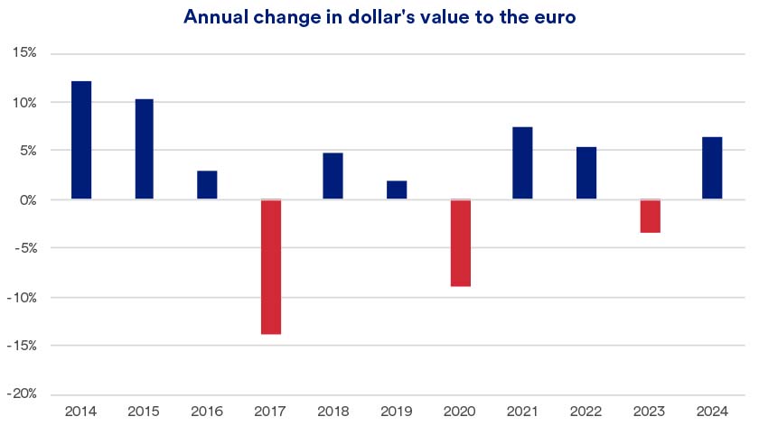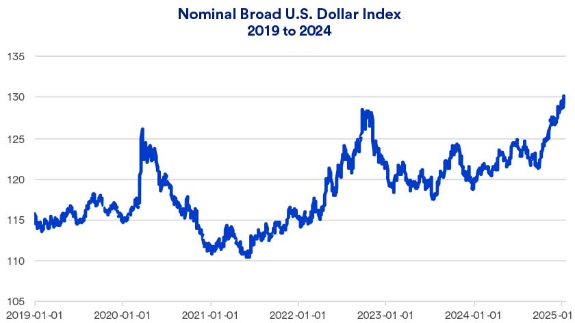 The U.S. dollar’s sharp decline early in 2025 boosted foreign investment returns, but its value later stabilized.