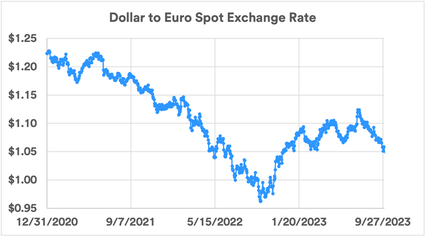 For example, the MSCI EAFE Index, which tracks developed market stocks outside the U.S., returned 18.1% in local currency terms through October 6, 2025. However, U.S. investors earned 28.1% after converting gains back into dollars, as the dollar notably weakened in the first half of the year. In contrast, when the dollar strengthens against other currencies, the conversion process reduces a U.S. investor’s net return after factoring the currency exchange impact.