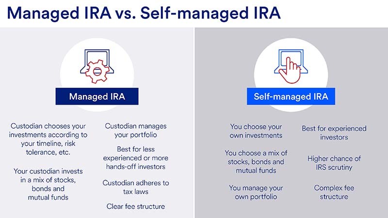 With a self-managed IRA, you’re responsible for choosing your own investments and managing your account, which means it’s usually a better option for experienced investors. Managing your own IRA requires a deep understanding of financial markets, investment strategies and asset allocation. Without this expertise, you may make poor investment decisions that can negatively affect your retirement savings.