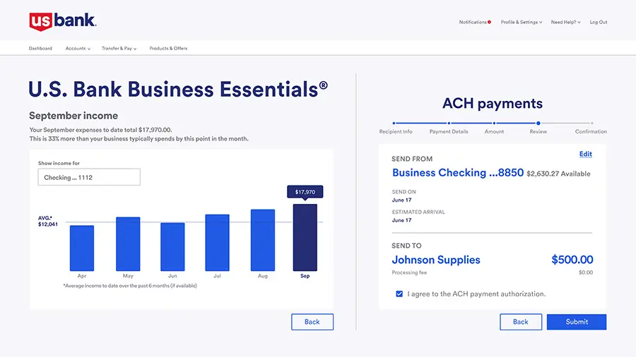 All regular account-opening procedures apply. For a comprehensive list of checking account pricing, terms and policies, reference your Business Pricing Information or Business Essentials Pricing Information and YDAA disclosure. These documents can be obtained by contacting a U.S. Bank branch or calling 800.872.2657.