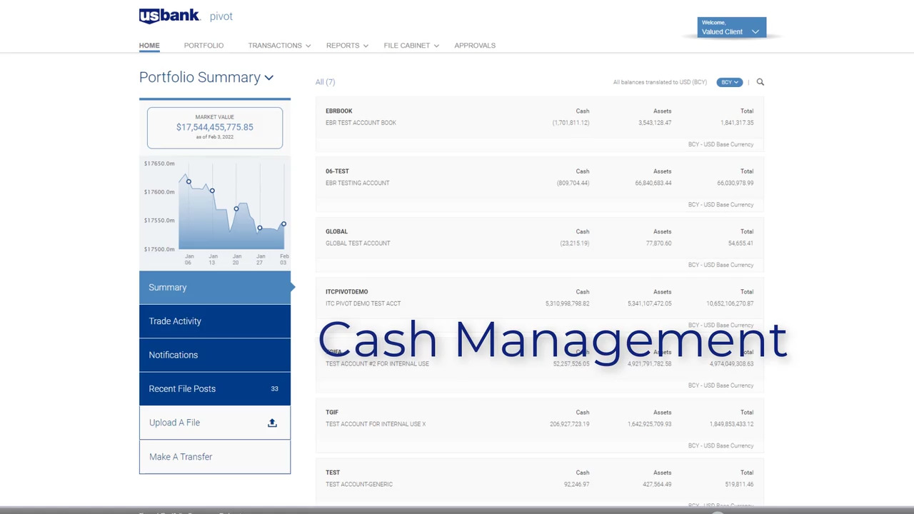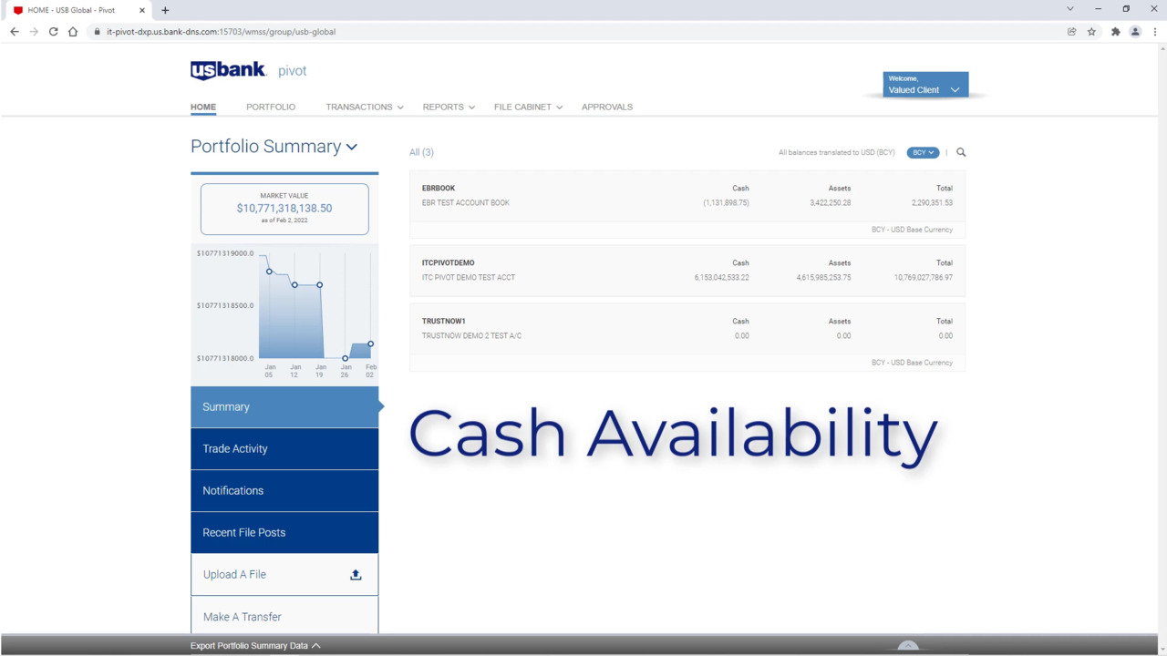 View cash summary and projections. See transaction types and change the currency filter. Review subscriptions and redemptions, purchases and sales, trades, interest and dividends.
