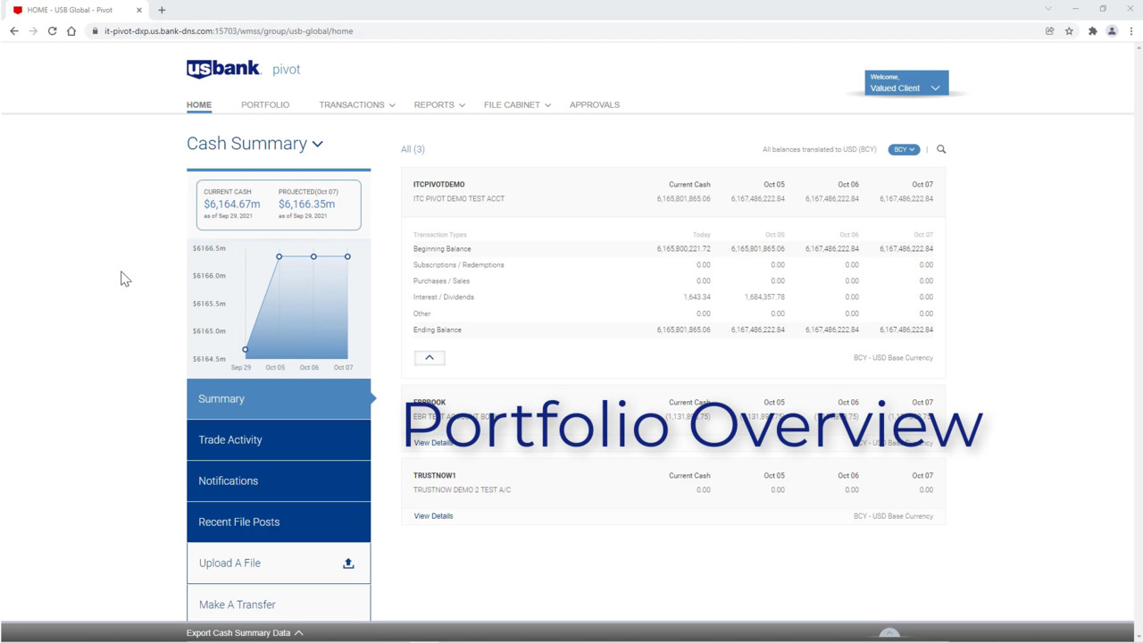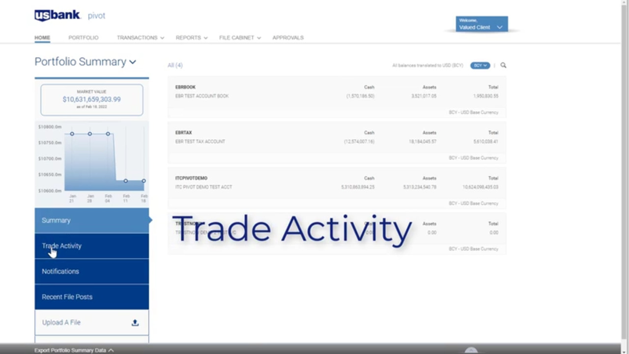 Login from your Pivot welcome screen. The homepage provides quick access to your portfolio summary, trade activity and notifications.