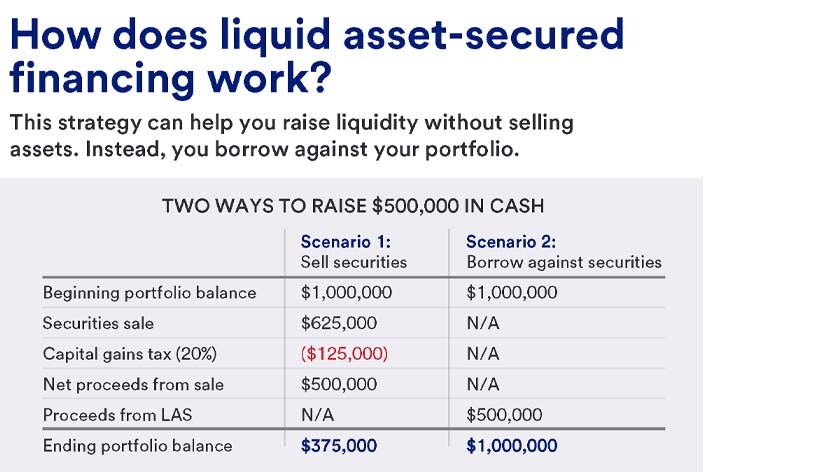 Liquid asset secured financing is a flexible line of credit secured by eligible assets in one or more of your investment accounts.