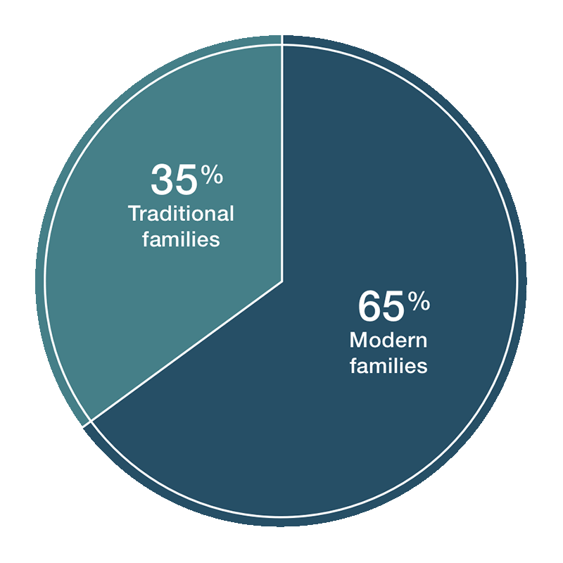 Modern families make up a large majority of families in the U.S. today. These families include: